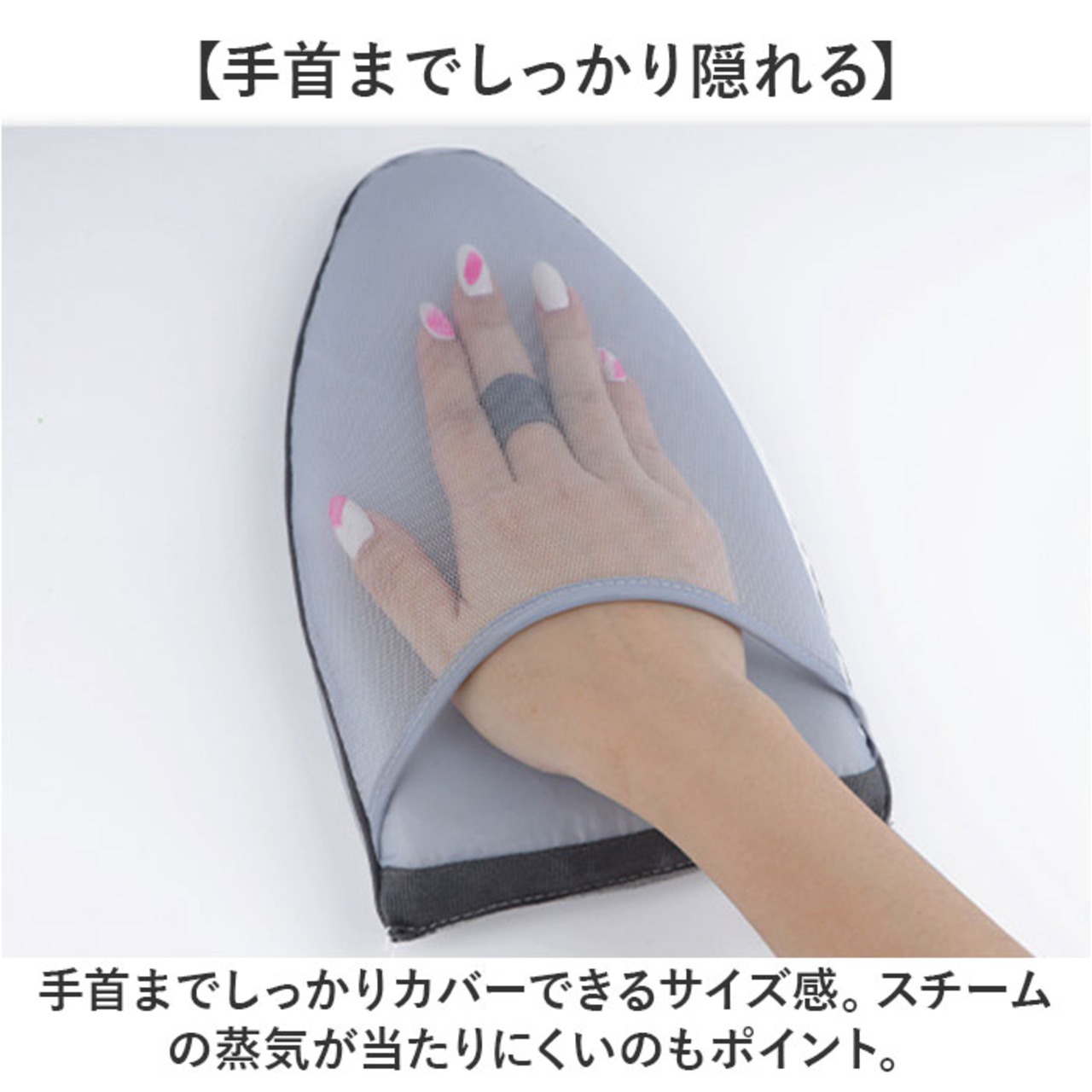 ・手首までしっかりカバーできるサイズ感。スチームの蒸気が当たりにくいのもポイント。