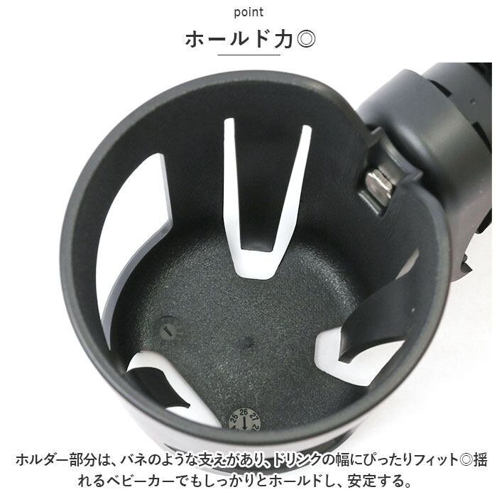 ・ホルダー部分は、バネのような支えがあり、ドリンクの幅にぴったりフィット◎揺れるベビーカーでもしっかりとホールドし、安定する。