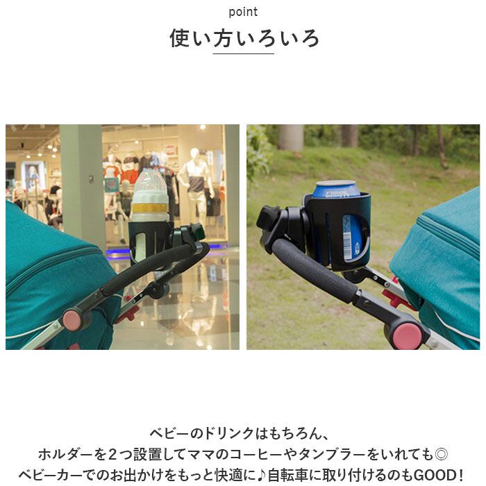 ・ベビーのドリンクはもちろん、ホルダーを2つ設置してママのコーヒーやタンブラーをいれても◎。ベビーカーでのお出かけをもっと快適に♪
