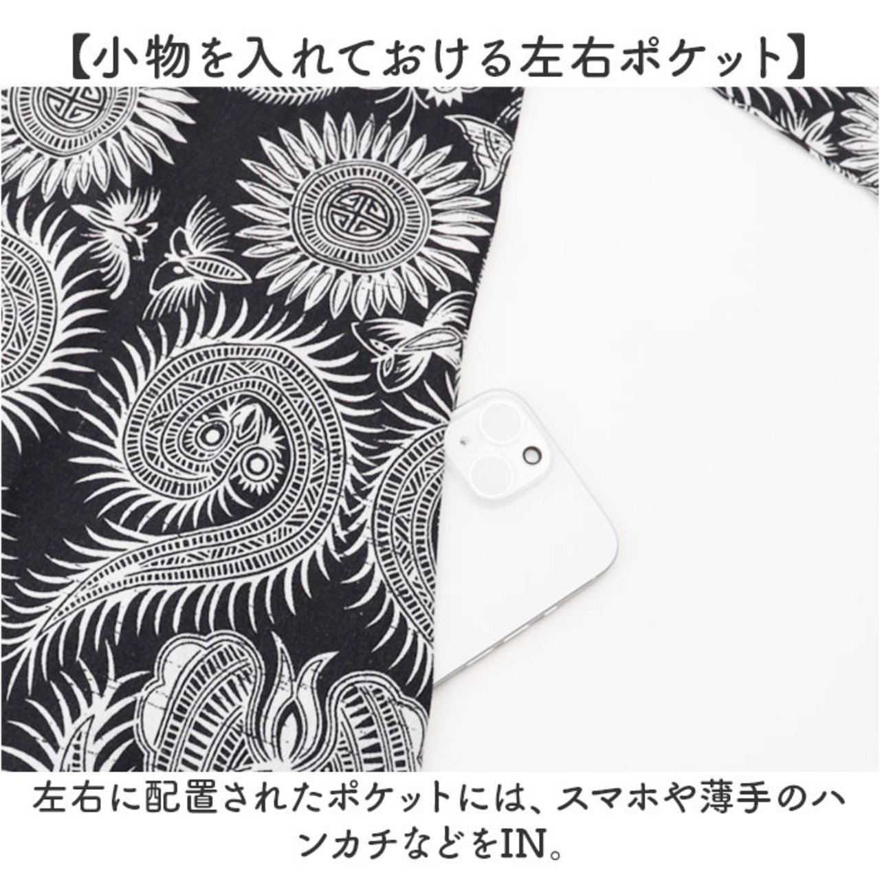 ・左右に配置されたポケットには、スマホや薄手のハンカチなどをIN。