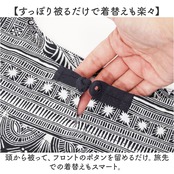 ・頭から被って、フロントのボタンを留めるだけ。旅先での着替えもスマート。