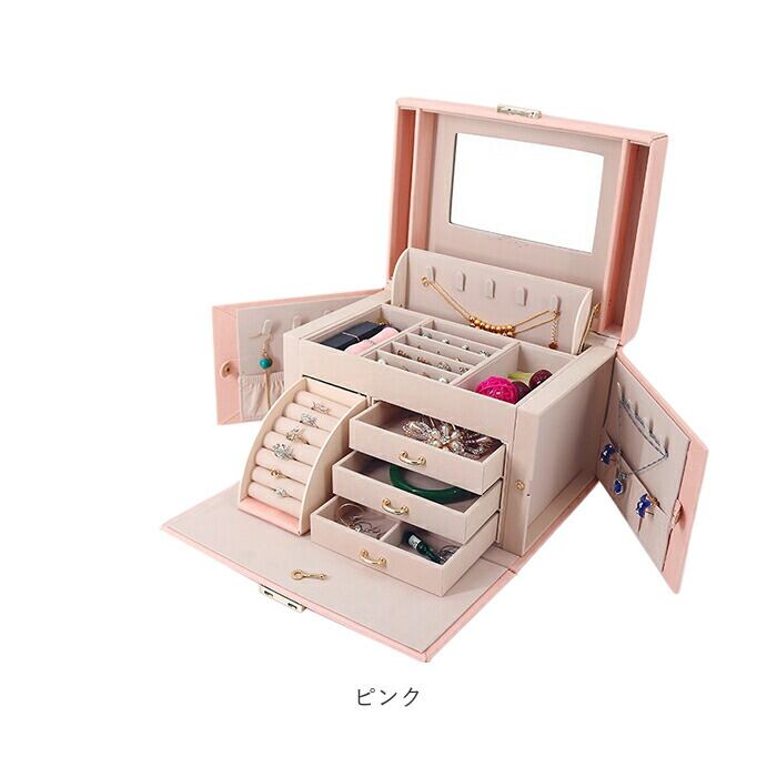 ジュエリーボックス 大容量 通販 アクセサリーケース アクセサリーボックス ジュエリーケース アクセサリー ジュエリー 収納 ネックレス 引き出し 3段 鏡付き ミラー付き 両開き 可愛い おしゃれ シンプル 指輪 リング ジュエリー収納 アクセサリー用品