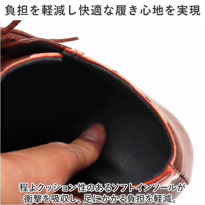 ・程よクッション性のあるソフトインソールが衝撃を吸収し、足にかかる負担を軽減。