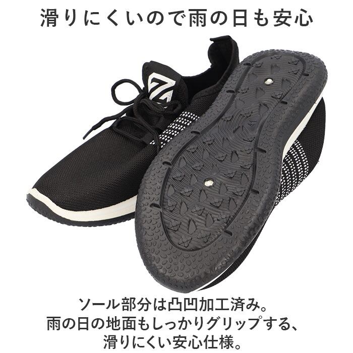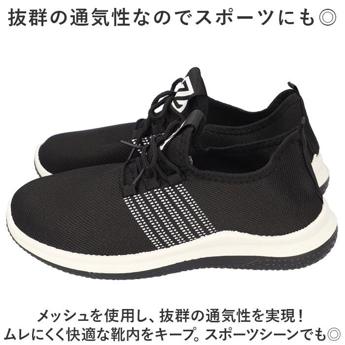 ・メッシュを使用し、抜群の通気性を実現!ムレにくく快適な靴内をキープ。スポーツシーンでも◎