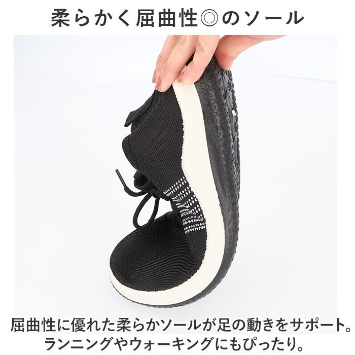 ・屈曲性に優れた柔らかソールが足の動きをサポート。ランニングやウォーキングにもぴったり。