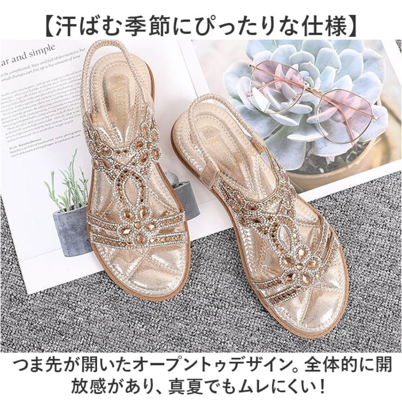 ・つま先が開いたオープントゥデザイン。全体的に開放感があり、真夏でもムレにくい!