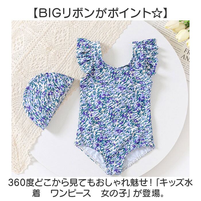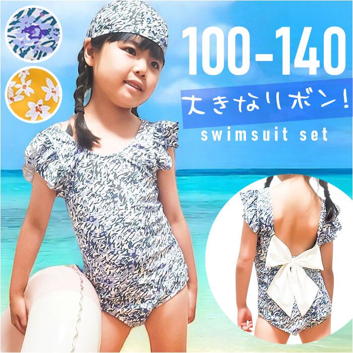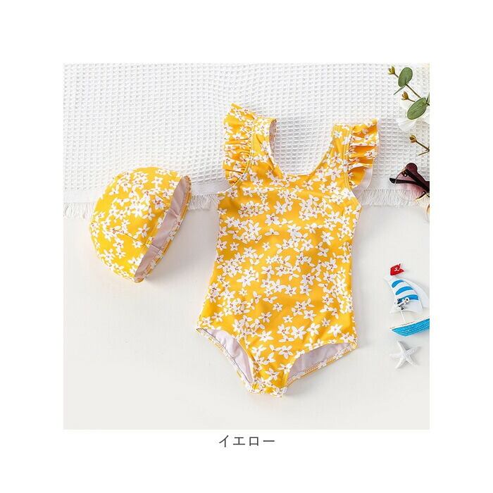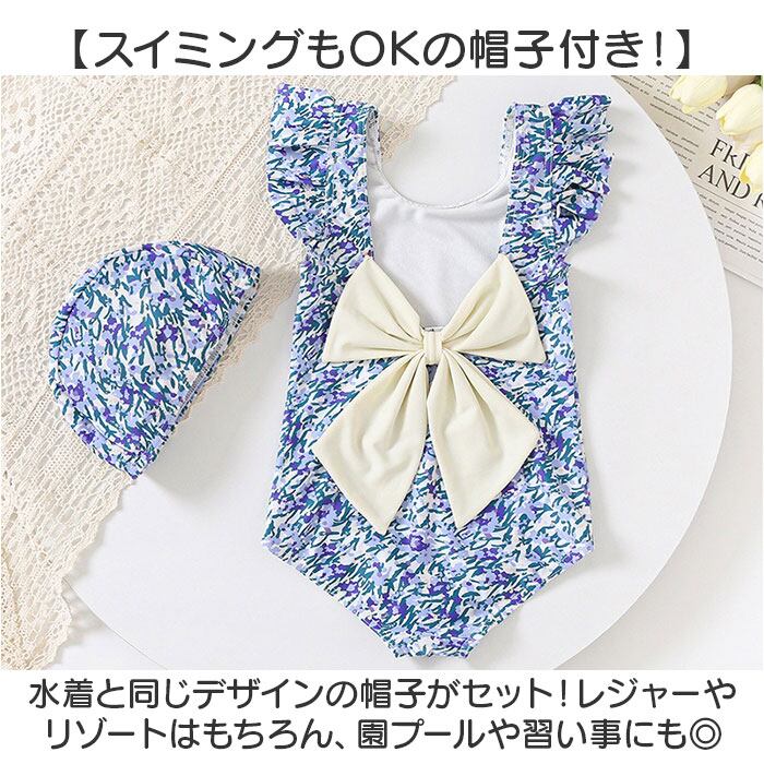 キッズ水着 花柄 リボン