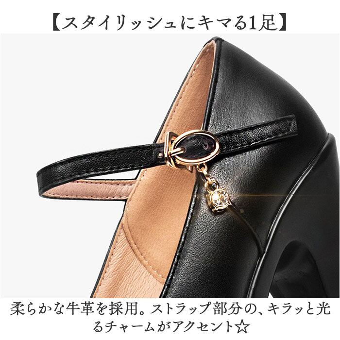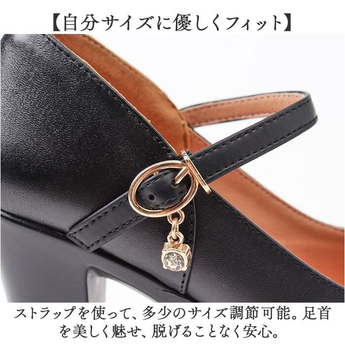 ・ストラップを使って、多少のサイズ調節可能。足首を美しく魅せ、脱げることなく安心。