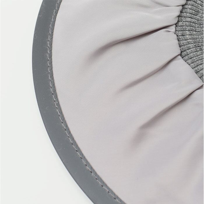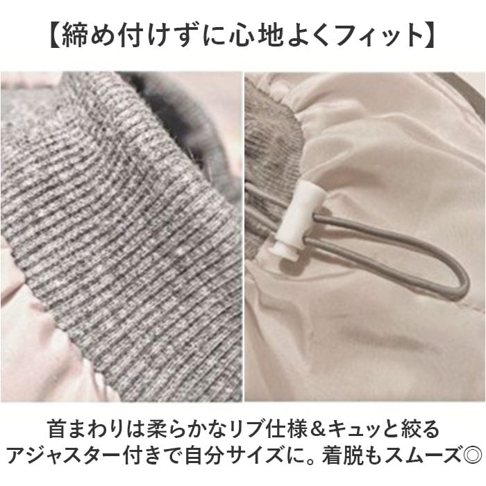 ・首まわりは柔らかなリブ仕様&キュッと絞るアジャスター付きで自分サイズに。着脱もスムーズ◎