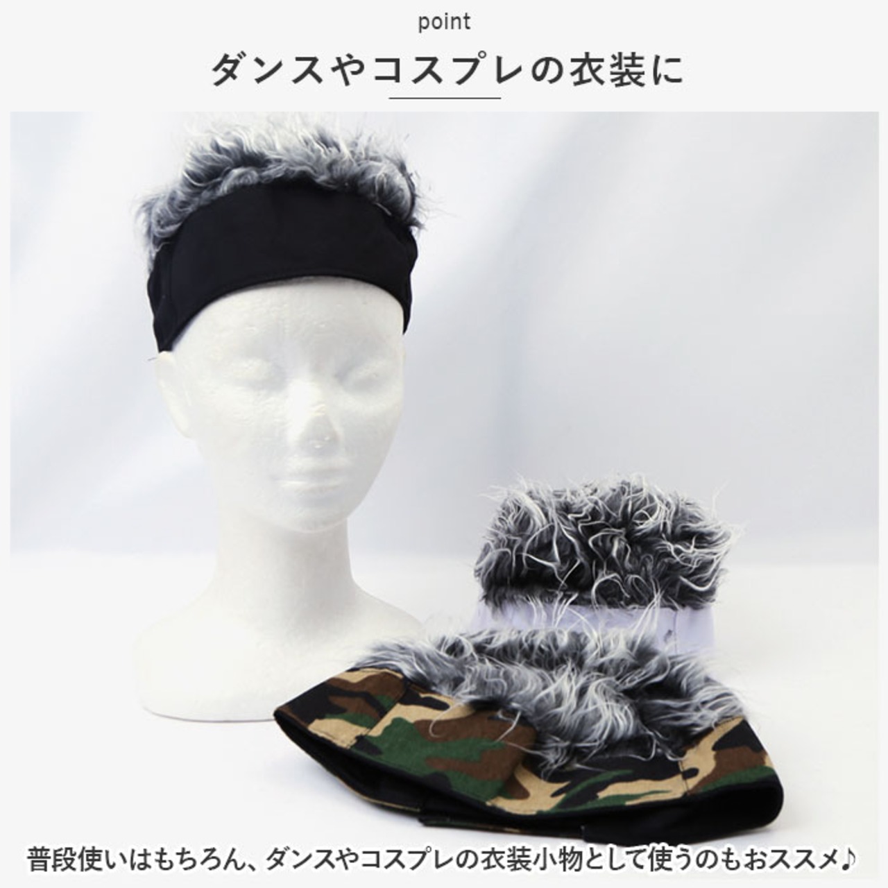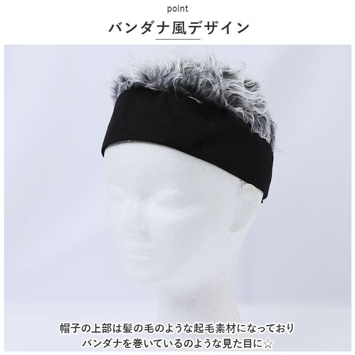 ・帽子の上部は髪の毛のような起毛素材になっておりバンダナを巻いているのような見た目に☆