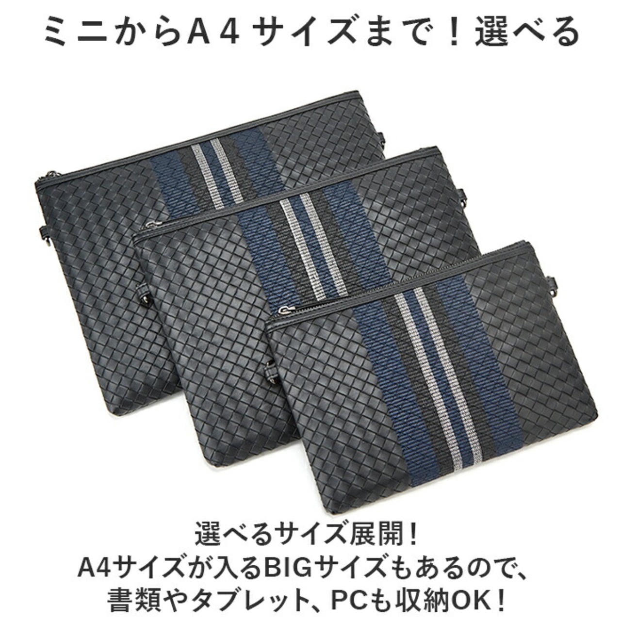 ・選べるサイズ展開!A4サイズが入るBIGサイズもあるので、書類やタブレット、PCも収納OK!