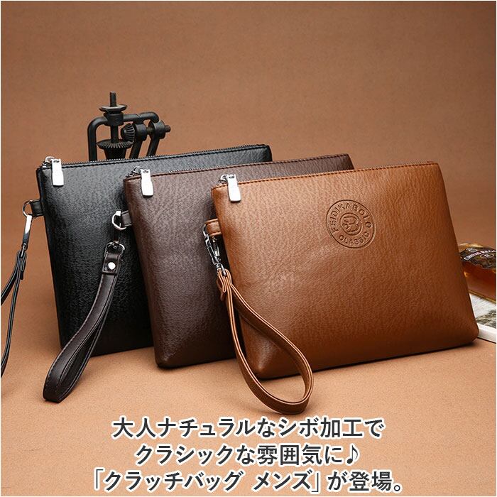 ・大人ナチュラルなシボ加工でクラシックな雰囲気に♪「クラッチバッグ メンズ」が登場。