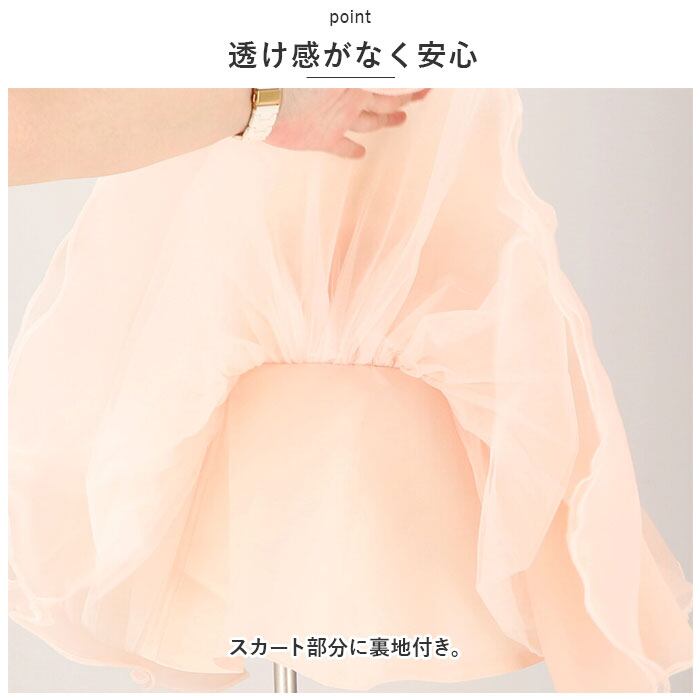 ・しっかりとした生地感のスカートに、ハリのあるオーガンジー素材と軽やかなチュールをプラス!