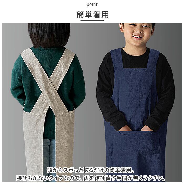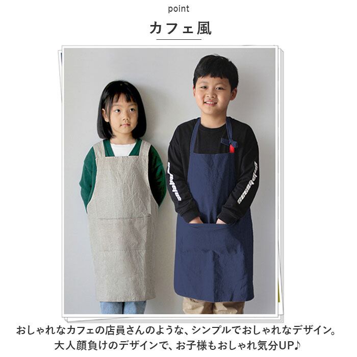 ・カフェ風おしゃれエプロン♪スポっと被るだけの簡単着用でお子様も嬉しい「エプロン キッズ」が登場。