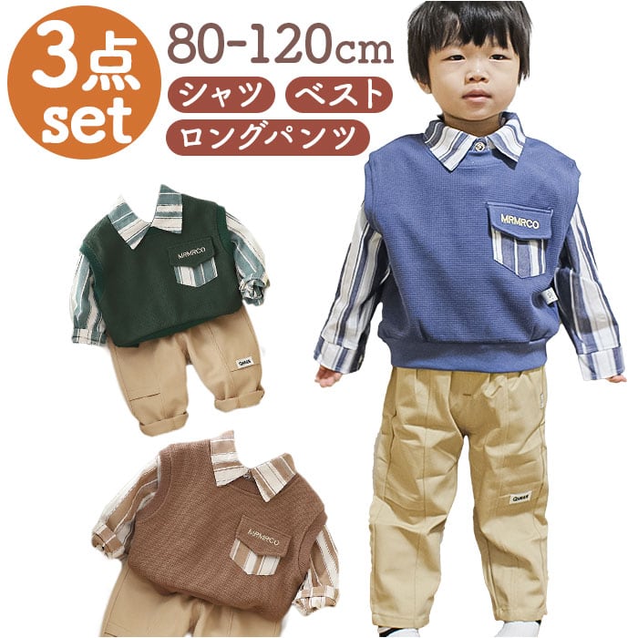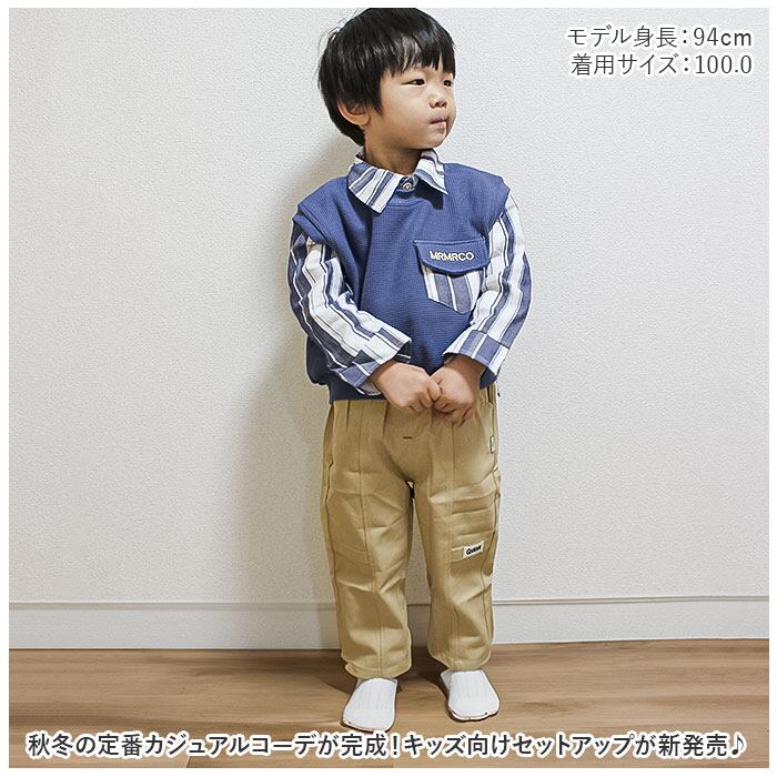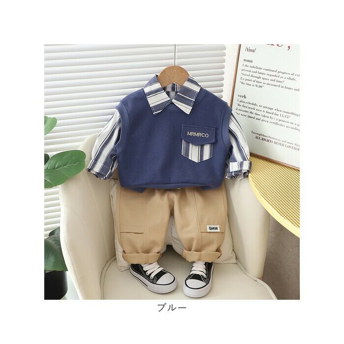 セットアップ ストライプシャツ 男の子 通販 ベスト パンツ 長ズボン ズボン 長袖シャツ 長袖 シャツ カジュアル ストライプ ポケット 子供服 子供用 子供 こども 子ども キッズ 幼児 春 秋