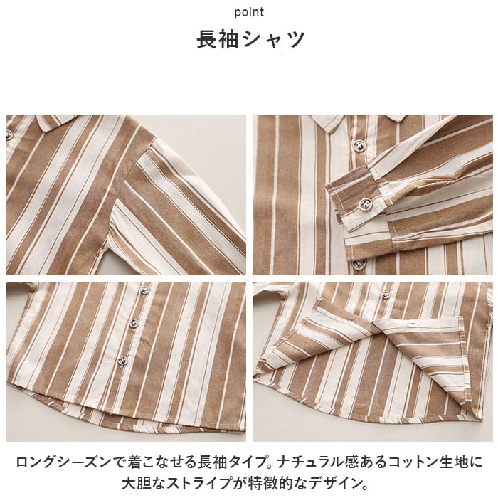 ・ロングシーズンで着こなせる長袖タイプ。ナチュラル感あるコットン生地に大胆なストライプが特徴的なデザイン。