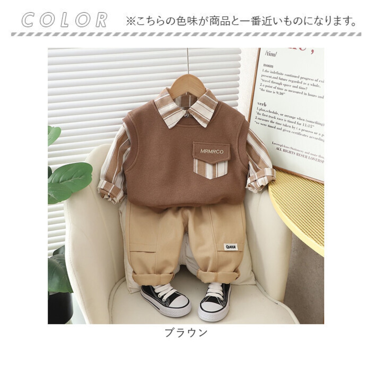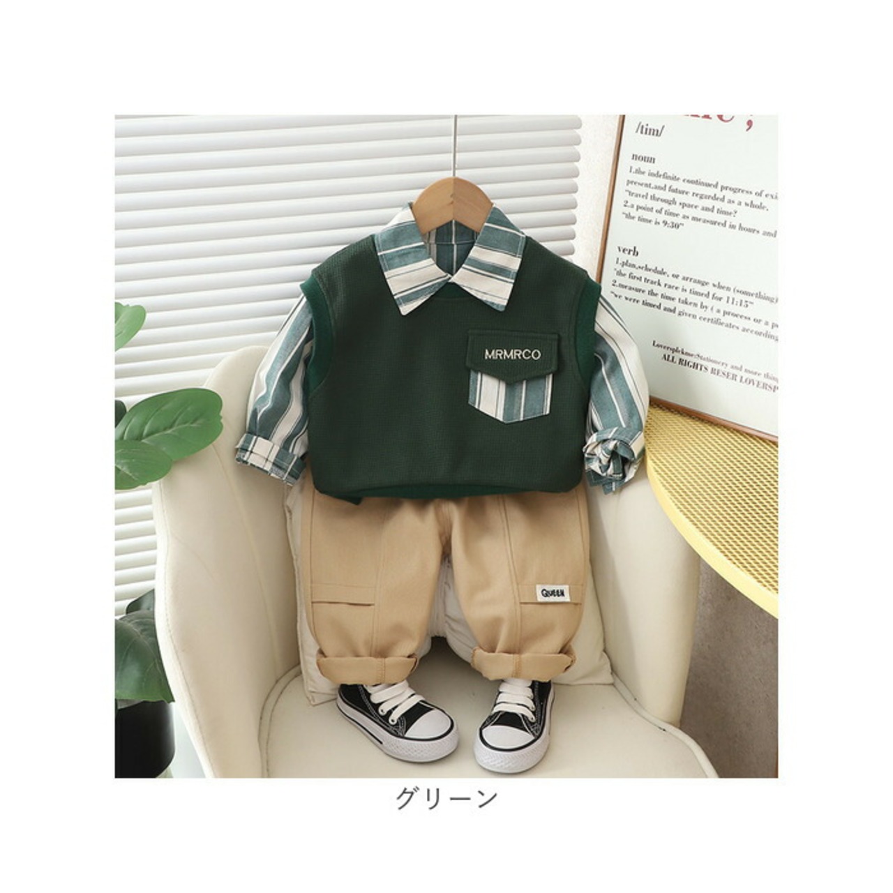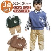 ・長袖シャツ・ベスト・ロングパンツが付いたお買い得なセットアップ。
