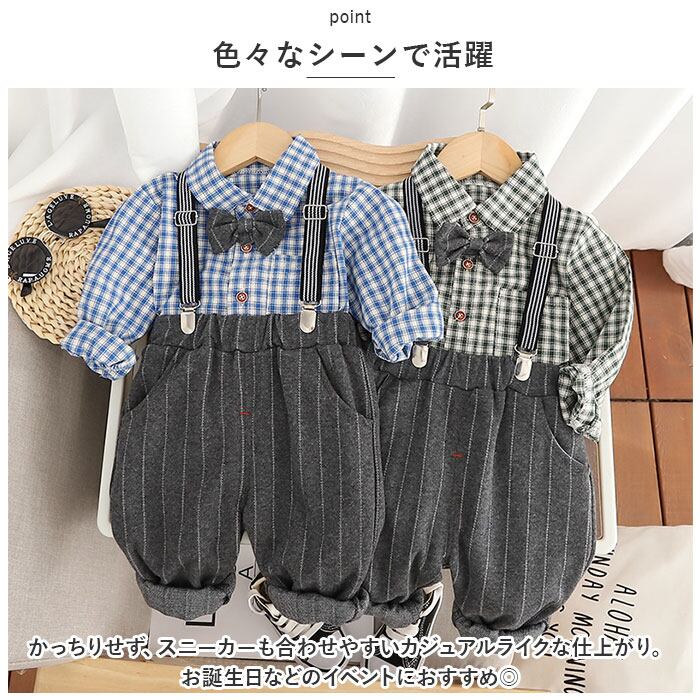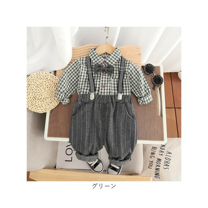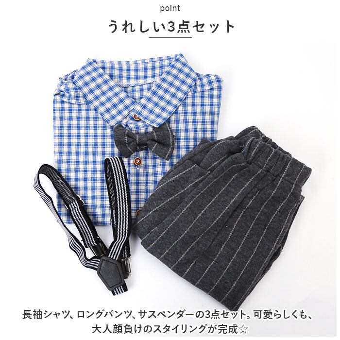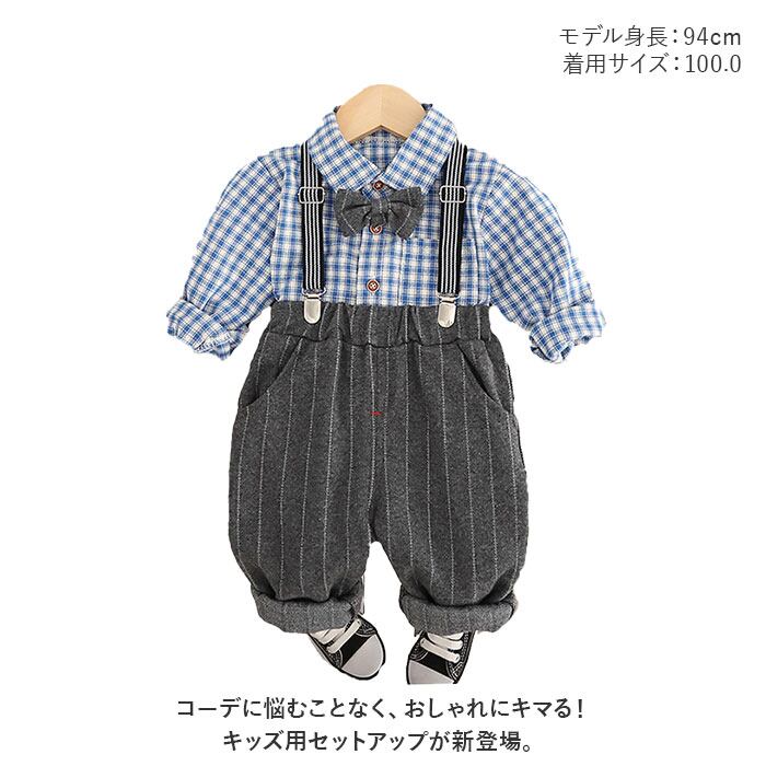 セットアップ シャツ チェック柄 男の子 通販 パンツ 長ズボン ズボン サスペンダー 長袖シャツ 長袖 蝶ネクタイ 子供服 カジュアル 子供用 子供 こども 子ども キッズ 春 秋