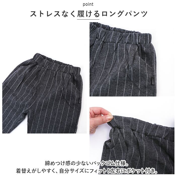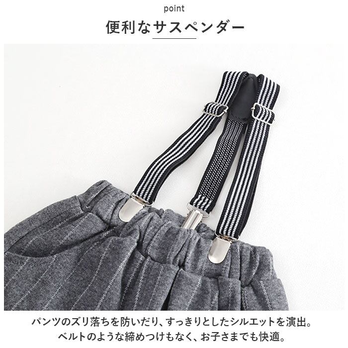 ・パンツのズリ落ちを防いだり、すっきりとしたシルエットを演出。ベルトのような締めつけもなく、お子さまでも快適。