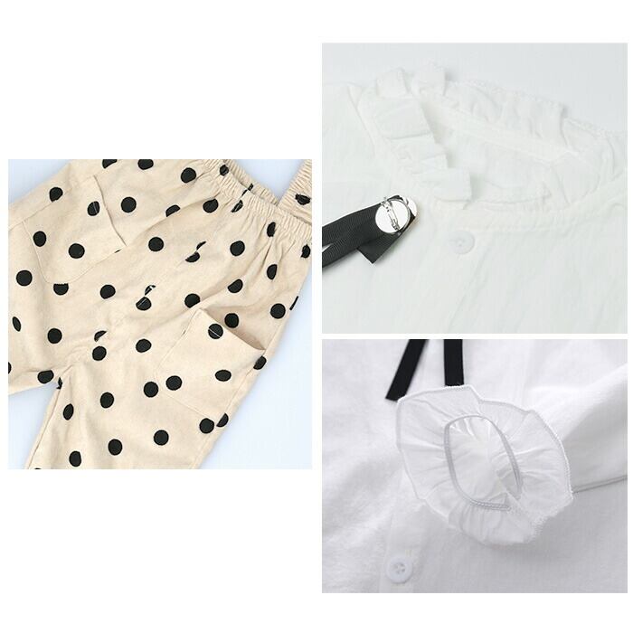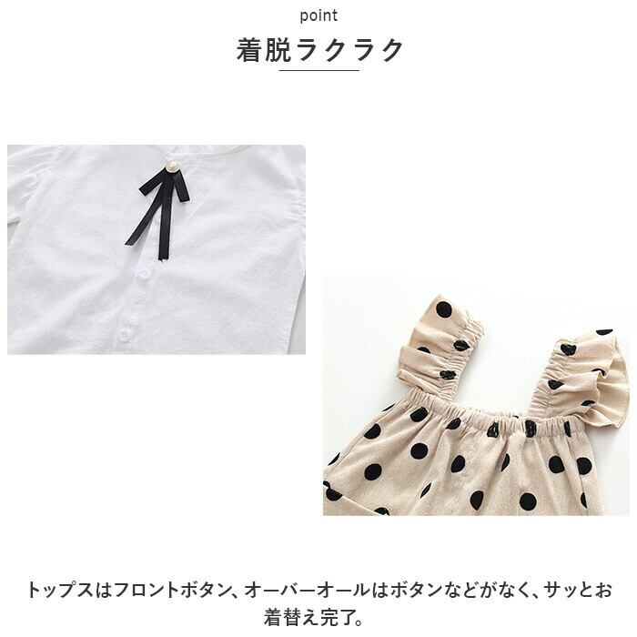 セットアップ オーバーオール 女の子 通販 パンツ ズボン ブラウス シャツ フリル ギャザー カジュアル 子供用 子供 こども 子ども キッズ おしゃれ 春 秋