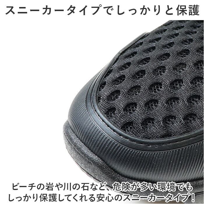 ・ビーチの岩や川の石など、危険が多い環境でもしっかり保護してくれる安心のスニーカータイプ!