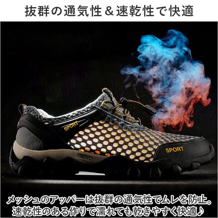 ・メッシュのアッパーは抜群の通気性でムレを防止。速乾性のある作りで濡れても乾きやすく快適♪