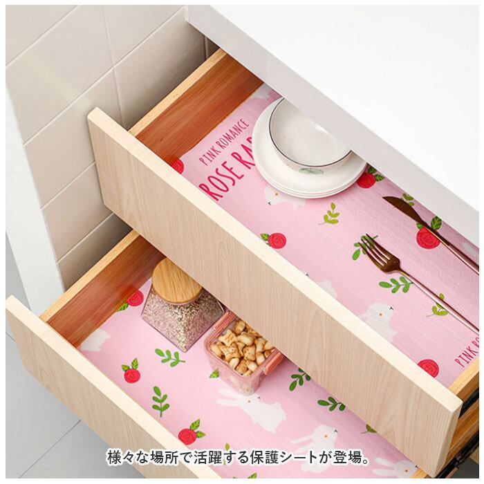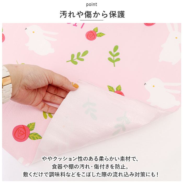・柔らかくややクッション性のある素材で、食器や棚の汚れ・傷付きを防止。敷くだけで調味料などをこぼした際の流れ込み対策にも!