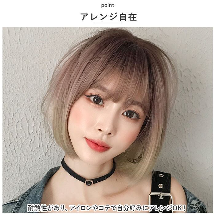 ウィッグ ボブ 通販 ショートボブ ショート かつら フルウィッグ フルウイッグ グラデーション メッシュ アッシュ ピンク ゴールド ショートストレート 全頭かつら 女性 イメチェン 大人 コスプレ 仮装 ヘアケア スタイリング ファッション 小物