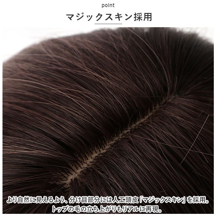 ・より自然に見えるよう、分け目部分には人工スキンを採用。トップの毛の立ち上がりもリアルに再現。