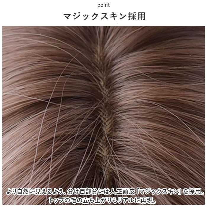 ・より自然に見えるよう、分け目部分には人工頭皮「マジックスキン」を採用。トップの毛の立ち上がりもリアルに再現。