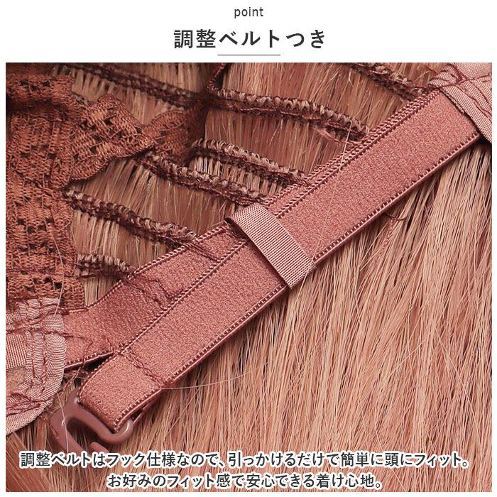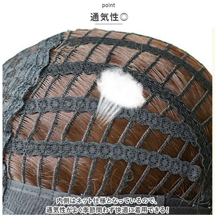 ・スムーズに着用できる、ウイッグキャップつき。地毛をしっかりまとめてキャップにインして、ラクラク着用。