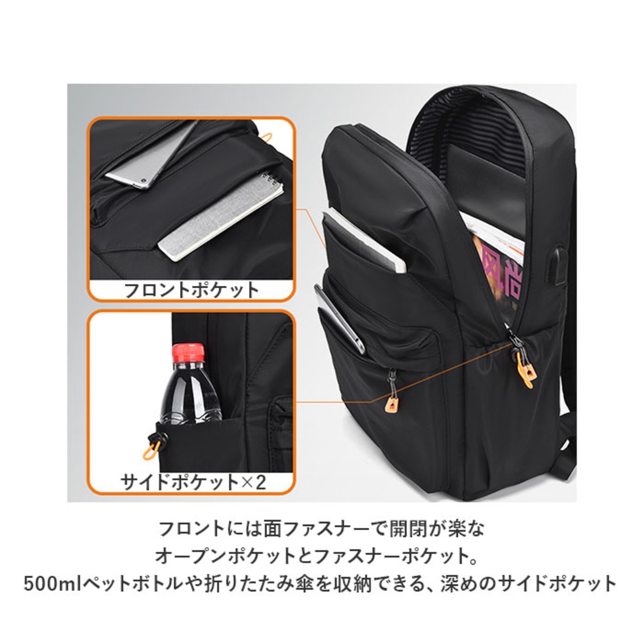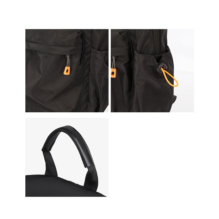 ・両サイドに500mlペットボトルや折りたたみ傘を挿して収納できる、深めのオープンポケットを1つずつ配置。
