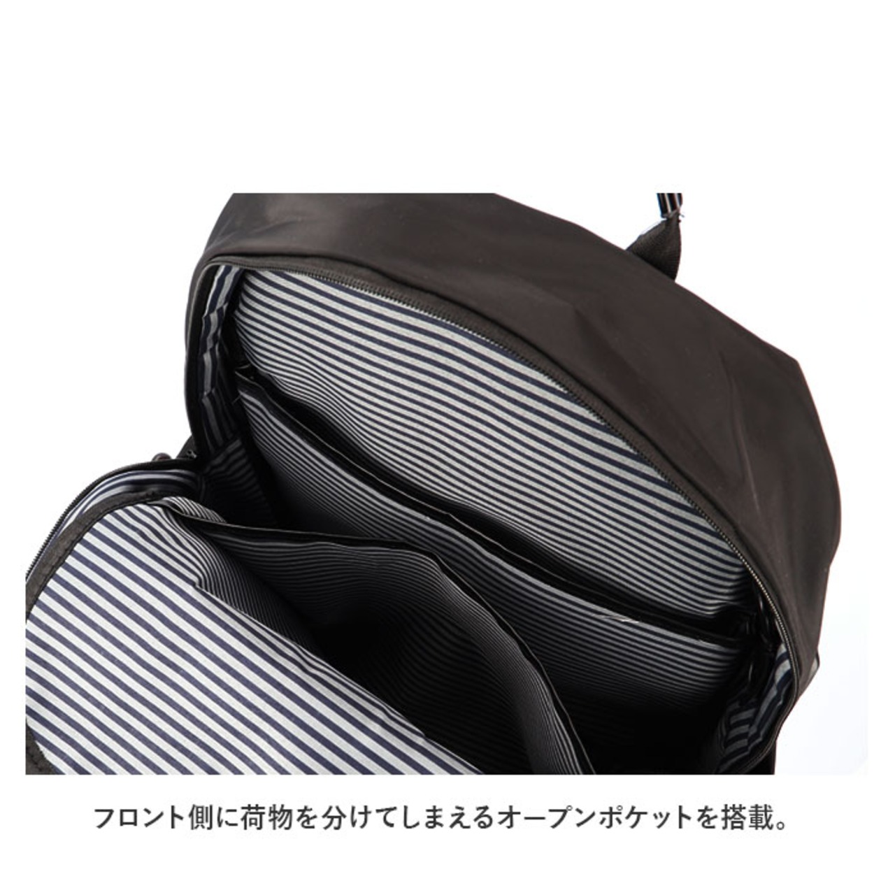 ・フロントには面ファスナーで開閉が楽なオープンポケットとファスナーポケットが付いており、小物が多くなっても整理して収納可能◎