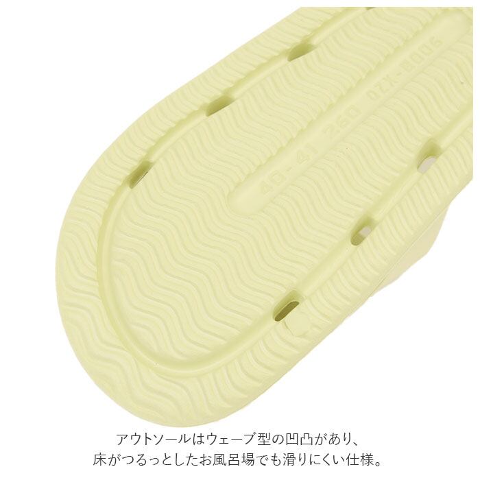 ・アウトソールはウェーブ型の凹凸があり、床がつるっとしたお風呂場でも滑りにくい仕様。