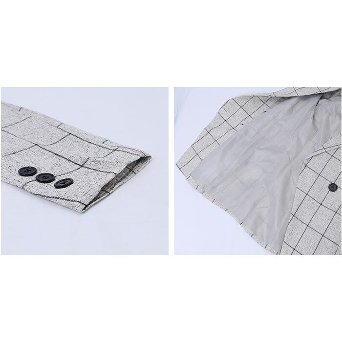 ・フロントボタンが2列になったデザイン。ソフトな肩パッド入りで、美しいカタチをキープ&スッと羽織れる裏地付き。左右にはポケットを配置。