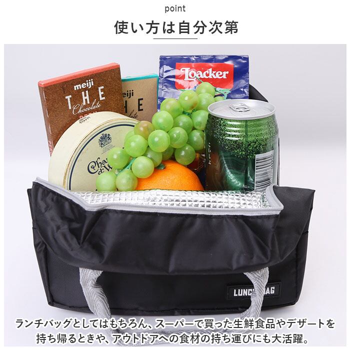 ・ランチバッグとしてはもちろん、スーパーで買った生鮮食品やデザートを持ち帰るときや、アウトドアへの食材の持ち運びにも大活躍。