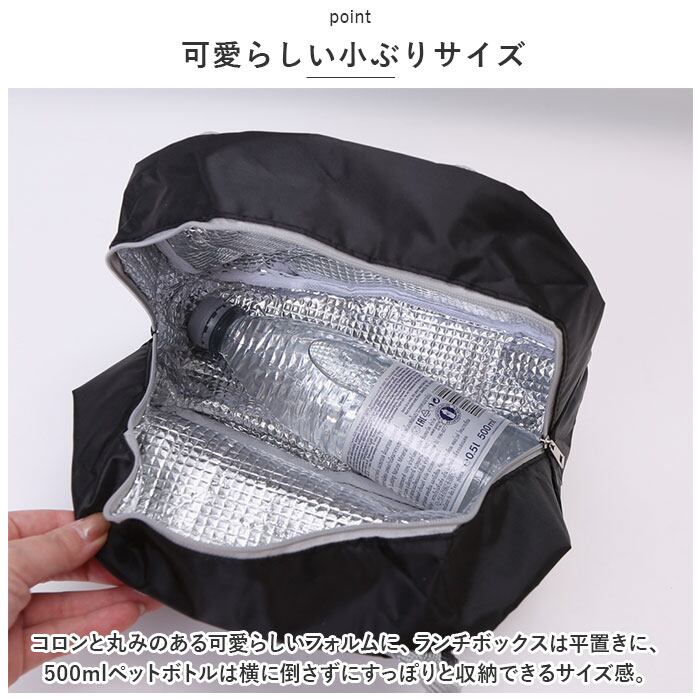 ・コロンと丸みのある可愛らしいフォルムに、ランチボックスは平置きに、500mlペットボトルは横に倒さずにすっぽりと収納できるサイズ感。