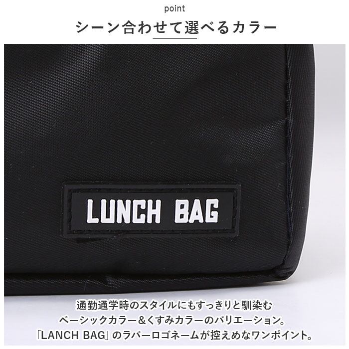 ・通勤通学時のスタイルにもすっきりと馴染むベーシックカラー&くすみカラーのバリエーション。「LANCH BAG」のラバーロゴネームが控えめなワンポイント。