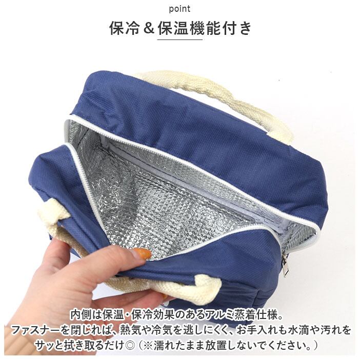 ・内側は保温・保冷効果のあるアルミ蒸着仕様。ファスナーを閉じれば、熱気や冷気を逃しにくく、お手入れも水滴や汚れをサッと拭き取るだけ◎(※濡れたまま放置しないでください。)