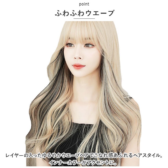 ウィッグ ロング 通販 ウイッグ ロングヘア かつら フルウィッグ フルウイッグ インナーカラー メッシュ ツートン アッシュ ウェーブ カール ロングカール 全頭かつら 女性 イメチェン コスプレ 仮装 ヘアケア スタイリング ファッション 小物