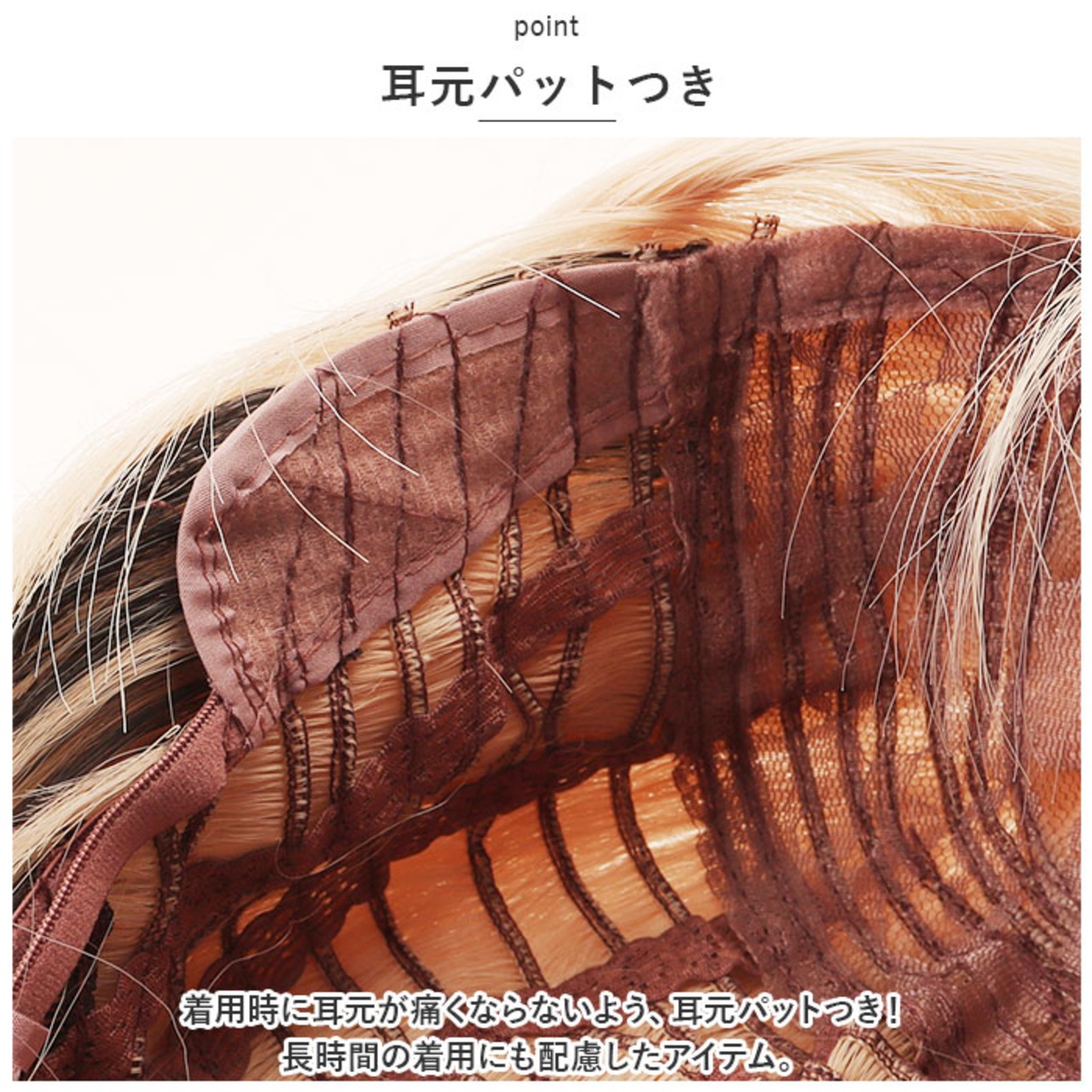 ・着用時に耳元が痛くならないよう、耳元パットつき!長時間の着用にも配慮したアイテム。