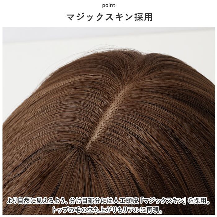 ・より自然に見えるよう、分け目部分には人工スキンを採用。トップの毛の立ち上がりもリアルに再現。