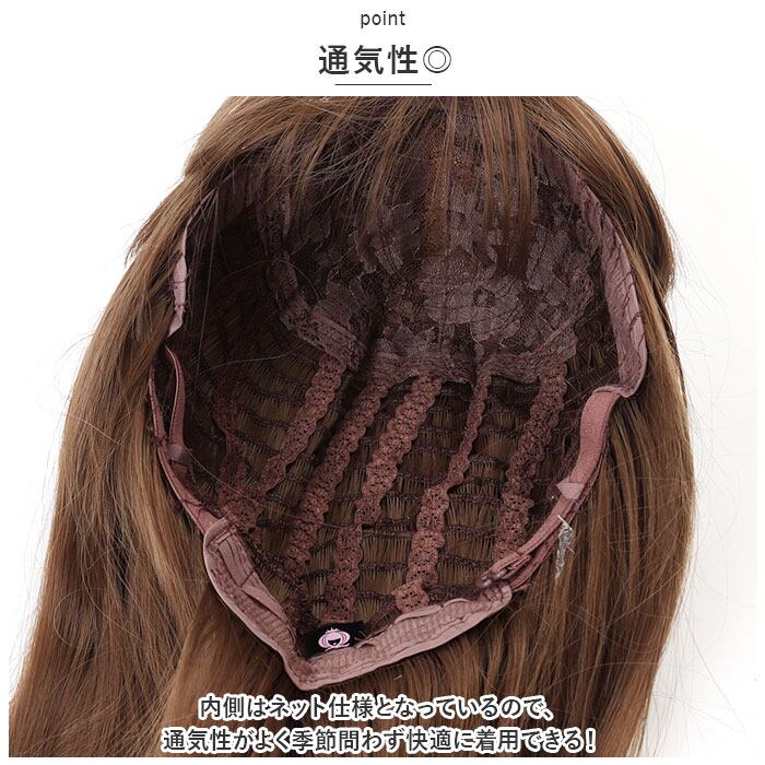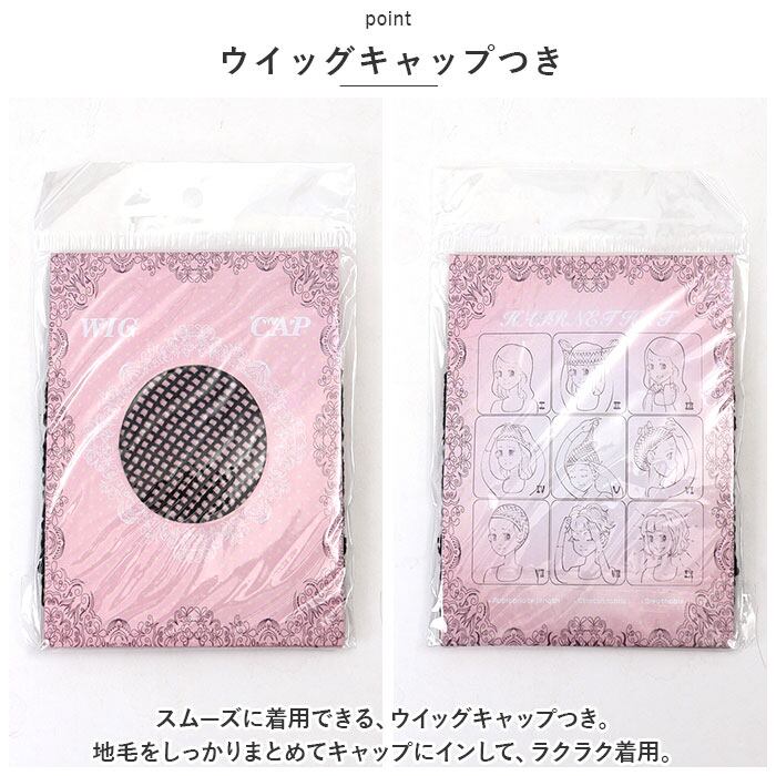 ・スムーズに着用できる、ウイッグキャップつき。地毛をしっかりまとめてキャップにインして、ラクラク着用。