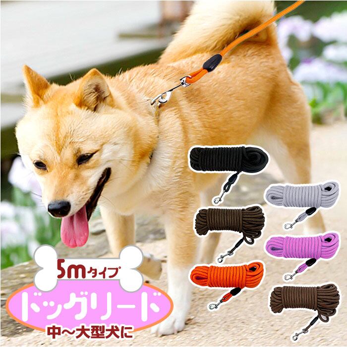犬 リード おしゃれ 5m 通販 犬用リード ドックリード ロープ 綱 丸形 いぬ イヌ 中型犬 小型犬 ベット 丸ひも 丸紐 軽量 持ちやすい スタンダード シンプル ベーシック お散歩 公園 トレーニング 訓練用 しつけ用 キャンプ ペットグッズ 犬用品