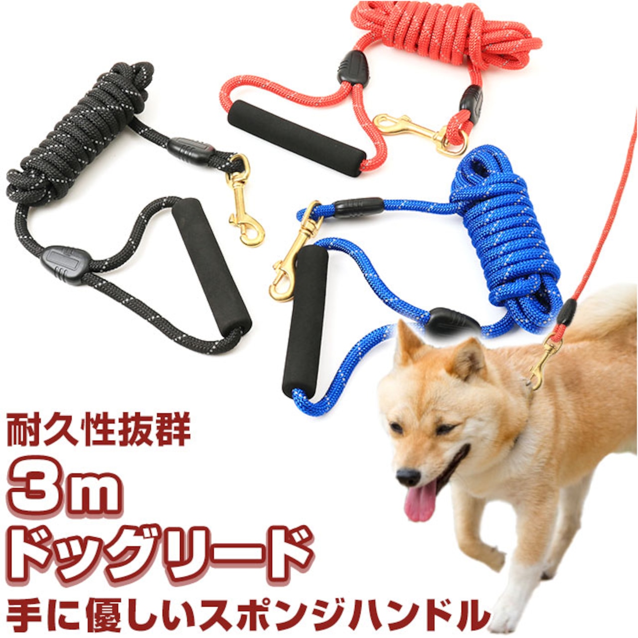 ・毎日楽しくお散歩して、ワンちゃんごきげんスマイル♪大型のワンちゃんでも安心、タフな「ドッグリード(3mタイプ)」が新登場!