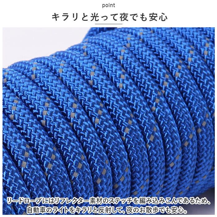 ・リードロープにはリフレクター素材のステッチを編み込みこんであるため、自動車のライトをキラリと反射して、夜のお散歩でも安心。