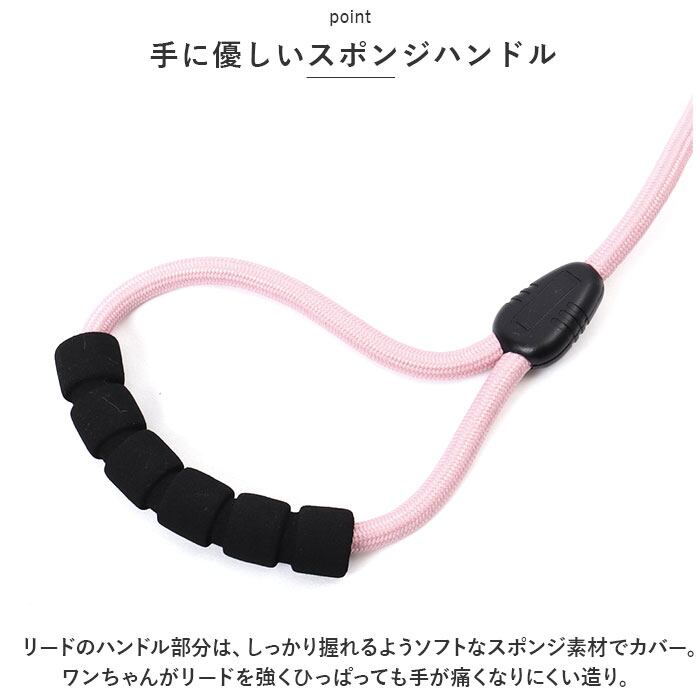 ・リードのハンドル部分は、しっかり握れるようソフトなスポンジ素材でカバー。ワンちゃんがリードを強くひっぱっても手が痛くなりにくい造り。