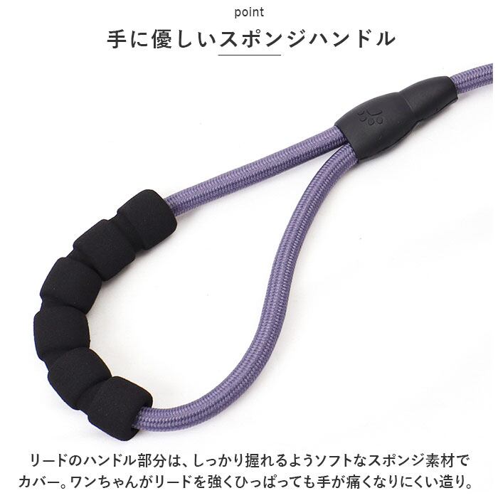 ・リードのハンドル部分は、しっかり握れるようソフトなスポンジ素材でカバー。ワンちゃんがリードを強くひっぱっても手が痛くなりにくい造り。