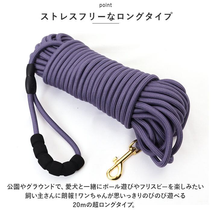 ・公園やグラウンドで、愛犬と一緒にボール遊びやフリスビーを楽しみたい飼い主さんに朗報!ワンちゃんが思いっきりのびのび遊べる20mの超ロングタイプ。