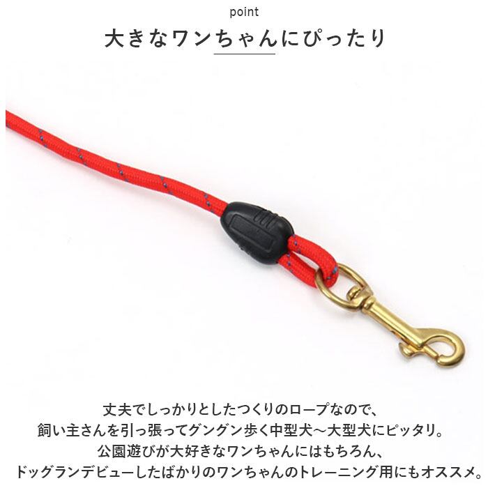 ・丈夫でしっかりとしたつくりのロープなので、飼い主さんを引っ張ってグングン歩く中型犬~大型犬にピッタリ。公園遊びが大好きなワンちゃんにはもちろん、ドッグランデビューしたばかりのワンちゃんのトレーニング用にもオススメ。